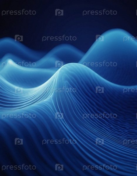 Плавучие 3D-синие волны создают абстрактное представление о динамике жидкости, вызывая спокойствие и глубину в минималистическом дизайне, который усиливает цифровое творчество