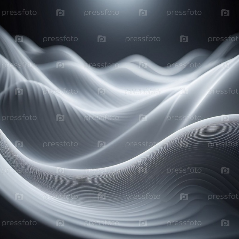 Плавучие 3D-волны в цветах черного и серого создают увлекательный абстрактный рисунок с гладкими кривыми и световым градиентом на темном фоне, который вызывает артистизм и спокойствие