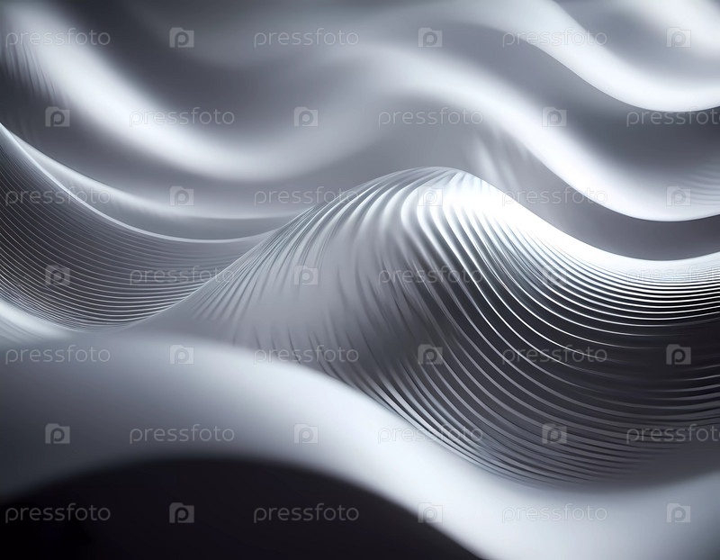 Плавучие 3D-волны в цветах черного и серого создают увлекательный абстрактный рисунок с гладкими кривыми и световым градиентом на темном фоне, который вызывает артистизм и спокойствие