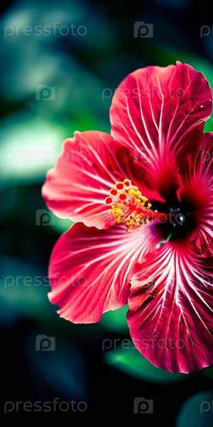 Ярко-красные цветы гибискуса демонстрируют сложные листья в цветущем саду. Прекрасная зелень создает яркий фон для их красоты. Гибискус является крупным родом растений из семейства Malvaceae