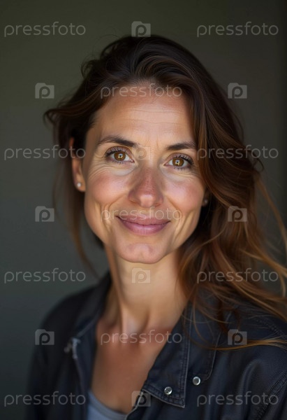 Французская красивая молодая жительница с волнистыми волосами разделяет подлинную улыбку, стоя в помещении, освещенном естественным светом, создавая притягательную атмосферу. Генерирующий ИИ