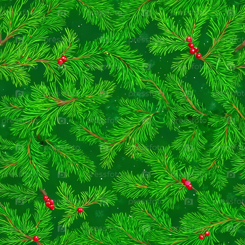 Прекрасные зеленые ветви пихты, переплетенные с ярко-красными ягодами, образуют радостный фон, воплощающий суть Рождества в зимний сезон, идеально подходит для украшения Generative AI