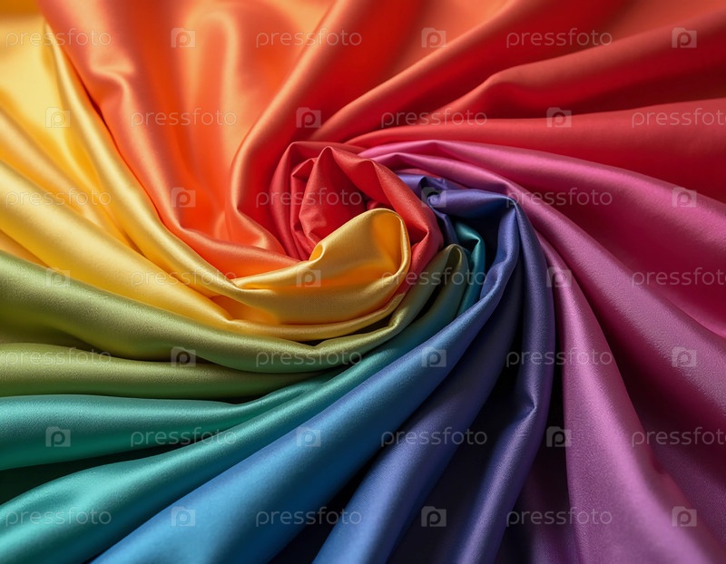 Потрясающий показ образцов шелковой ткани в спектре ярких цветов создает красивый вихрь, вдохновляющий творчество в дизайне одежды и текстильном искусстве