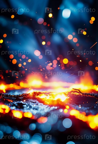 Завораживающее проявление огня, освещающего темноту, с пылающими угли, кружащимися в танце. Атмосфера мерцает с интенсивностью, когда космическая энергия врывается в жизнь Генеративный ИИ