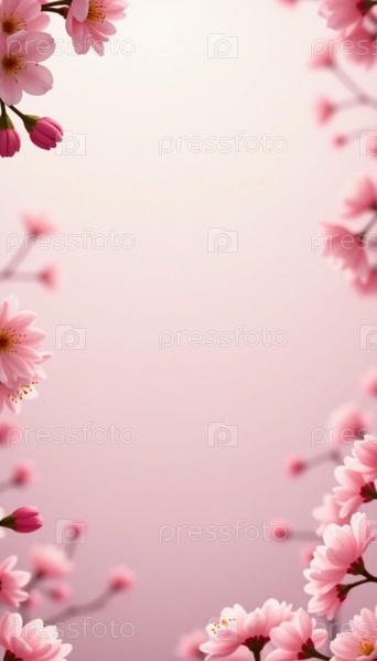 Потрясающий показ цветов сакуры изящно украшает края нежного розового фона, создавая спокойную и теплую атмосферу. Нежные цветы с их тонкими оттенками розового вызывают чувство обновления и красоты, приглашая зрителей погрузиться в безмятежную атмосферу.