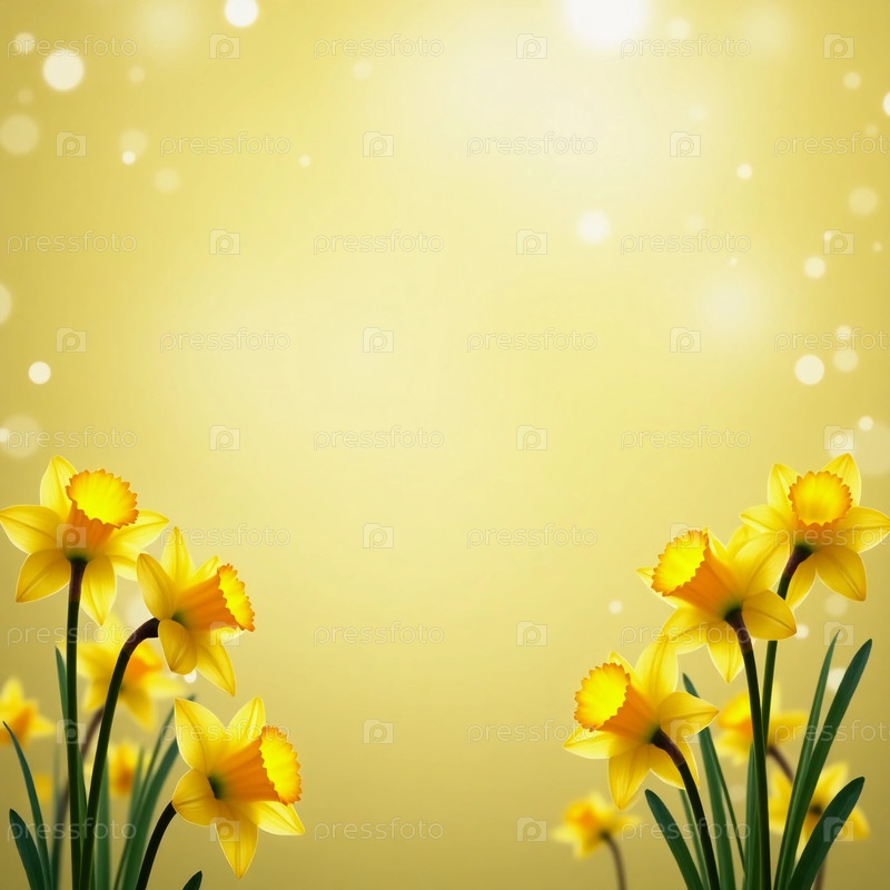 В безмятежном саду, наполненном цветущим нарциссом, яркие желтые цветы стоят высоко на мягком золотом фоне боке. Нежные лепестки излучают тепло, когда нежный солнечный свет фильтруется, отбрасывая мечтательное свечение, которое предлагает спокойствие. Эта