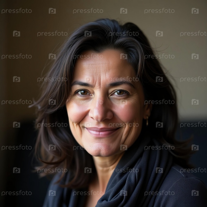 Женщина средних лет из сектора Газа общается с миром через свою яркую улыбку, излучая тепло и силу, воплощая дух своего сообщества среди проблем