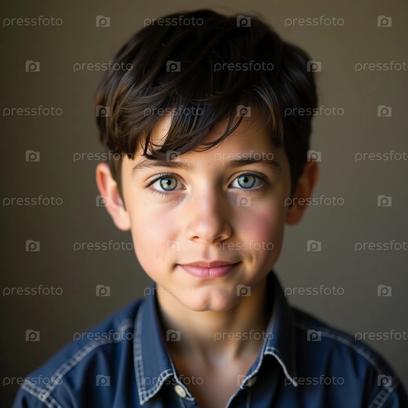 В уютной крытой обстановке белорусский мальчик нежно смотрит на зрителя, выделяя его ярко-синие глаза и очаровательную улыбку