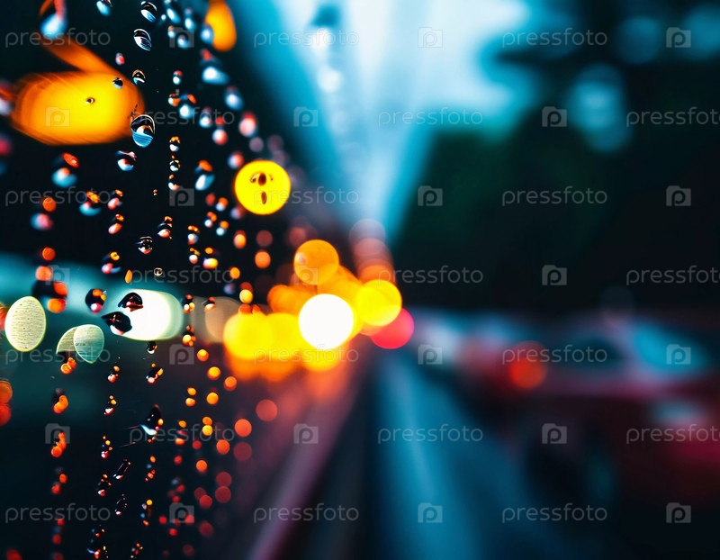 Капли дождя цепляются за поверхность автомобильного стекла, искажая яркий городской пейзаж вечером, где красочные огни от движения и зданий сливаются в красивый дисплей. Генерирующий ИИ