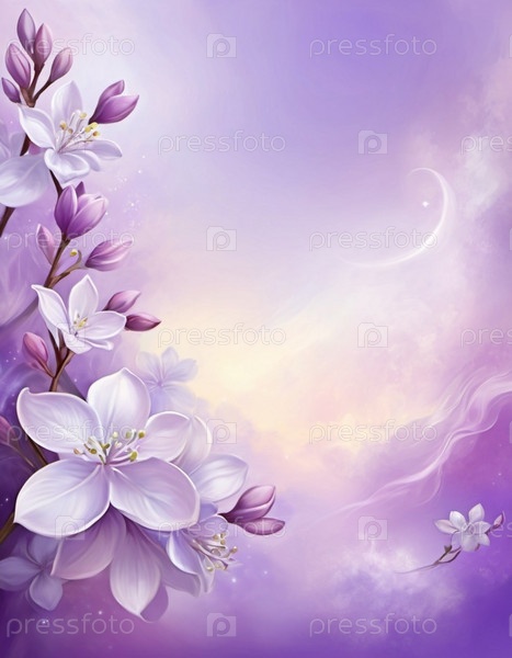 Выстрел нежных цветов сирени, лепестков мягкого, пастельного фиолетового и белого, на размытом фоне. Изображение фиксирует сложные детали цветов, демонстрируя их нежную красоту. ИИ