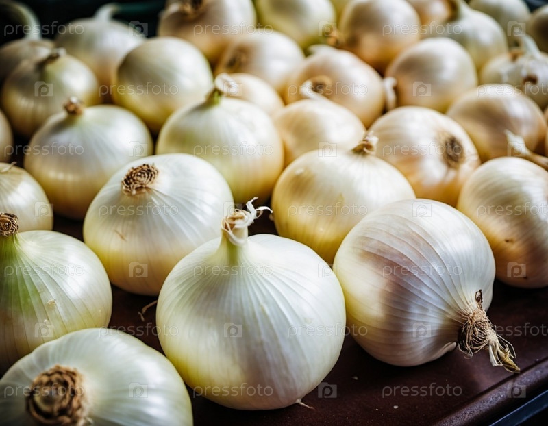 Множество свежих, больших белых луковиц аккуратно расположены на стойке супермаркета, демонстрируя их блестящую белую кожу и приглашая покупателей выбрать их для приготовления пищи. Генерирующий ИИ