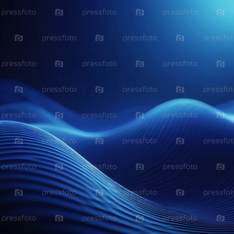 Плавучие 3D-синие волны создают абстрактное представление о динамике жидкости, вызывая спокойствие и глубину в минималистическом дизайне, который усиливает цифровое творчество
