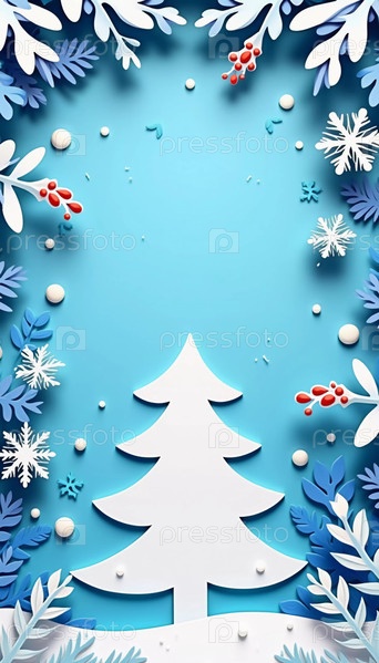 В зимней сцене ручной работы представлены тонкие бумажные вырезанные конструкции покрытых снегом деревьев и замысловатые снежинки на мягком синем фоне для праздничного декора. Новый год, Рождество. Генерирующий ИИ