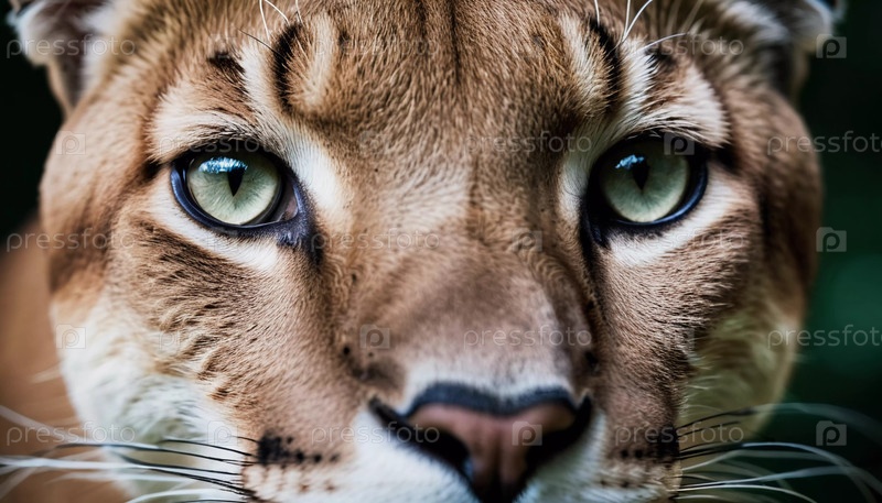Вглядываясь в мир пумы, этот крупный план демонстрирует замысловатые узоры в глазах и шерсти, поскольку он покоится в своей среде обитания. Интенсивный взгляд. Пумы являются родом хищников из семейства кошачьих. Генерирующий ИИ