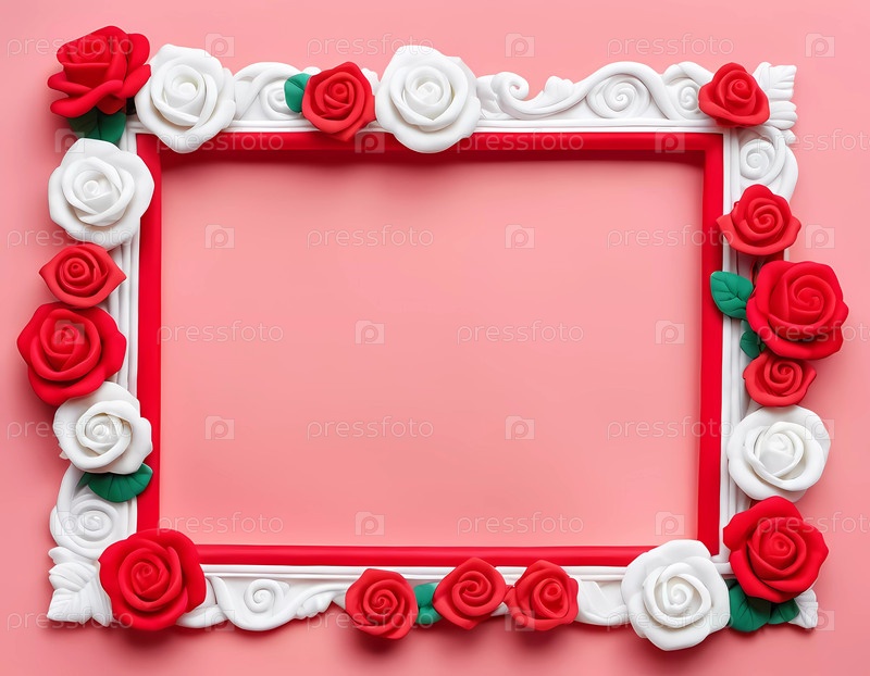 Декоративный каркас, украшенный красными и белыми розами на розовом фоне, обеспечивает очаровательный фон для искусства или сообщений. Идеально подходит для торжеств и особых случаев. Генерирующий ИИ