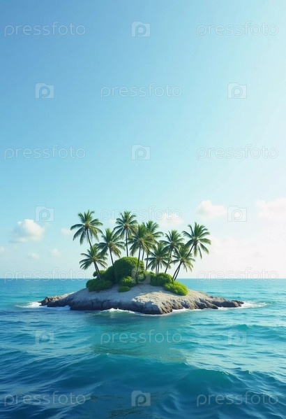 Скрытый тропический остров купается в солнечном свете, охваченный нежными волнами океана. Пышные пальмы грациозно качаются, маня тех, кто ищет мира и одиночества Генерирующий ИИ