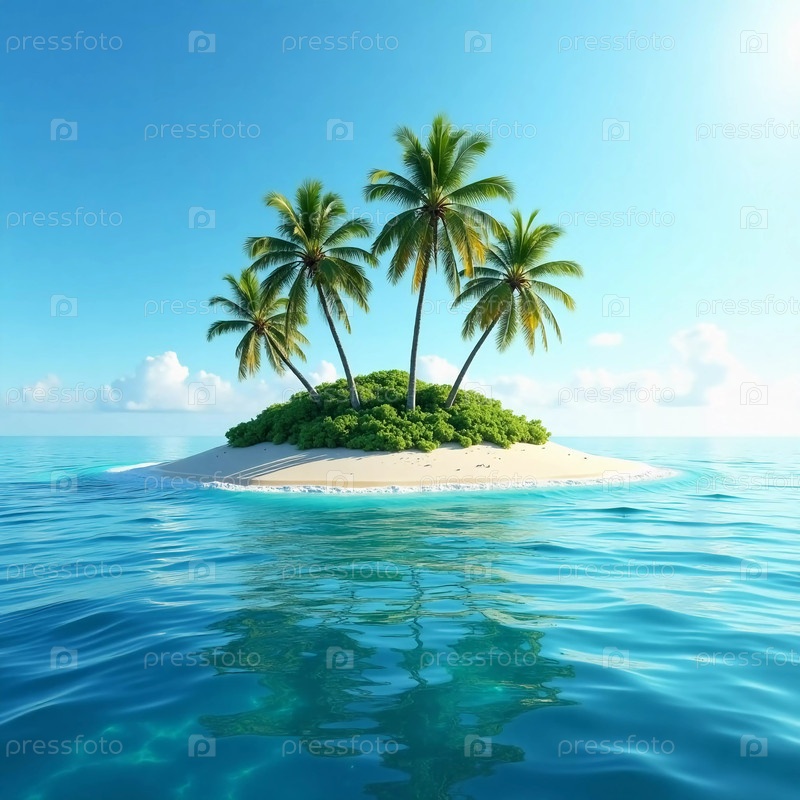Этот безмятежный остров имеет мягкий песчаный пляж, обнимаемый мелкой бирюзовой водой, с элегантными пальмами, приглашающими расслабиться и успокоиться в солнечный день