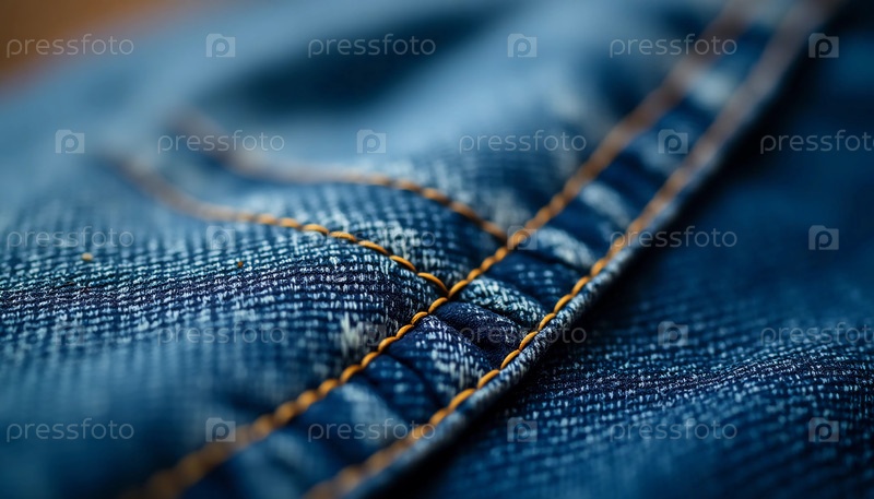 Вид крупным планом захватывает текстуру синей ткани денима, подчеркивая швы и карманы, которые определяют стиль классических джинсов, вызывая ностальгию и комфорт