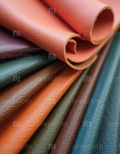Яркие рулоны искусственной кожи демонстрируют различные цвета, красиво расположенные, чтобы подчеркнуть текстуру и оттенок, приглашая к творчеству и вдохновению энтузиастов дизайна