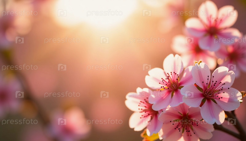 Нежные цветы сакуры украшают ветви, их мягкие розовые лепестки освещаются теплыми объятиями солнечного утреннего света. Когда весна просыпается, эти цветы создают захватывающее зрелище красоты природы, приглашая всех остановиться и оценить яркие цвета и б