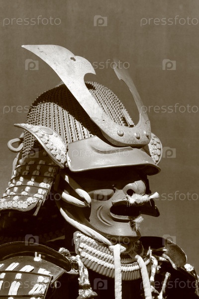 Самурайский доспех, крупный план. Монохром, сепия