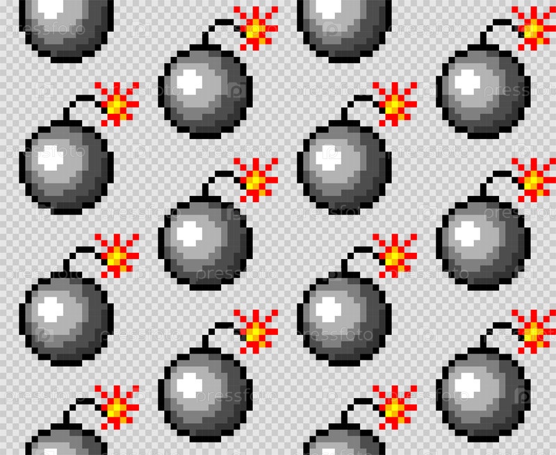 Бесшовный пиксельный фон с бомбами