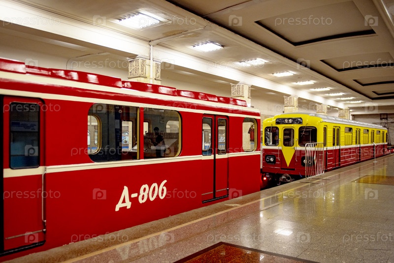 Выставка ретро вагонов Московского метро на странции Партизанская