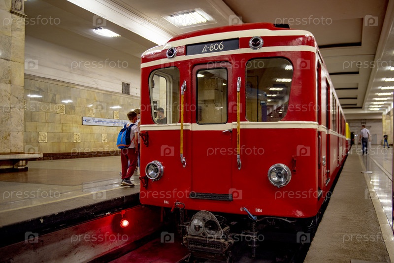 Выставка ретро вагонов Московского метро на странции Партизанская