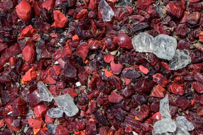 Куча красных и оранжевых драгоценных камней на земле в качестве фона