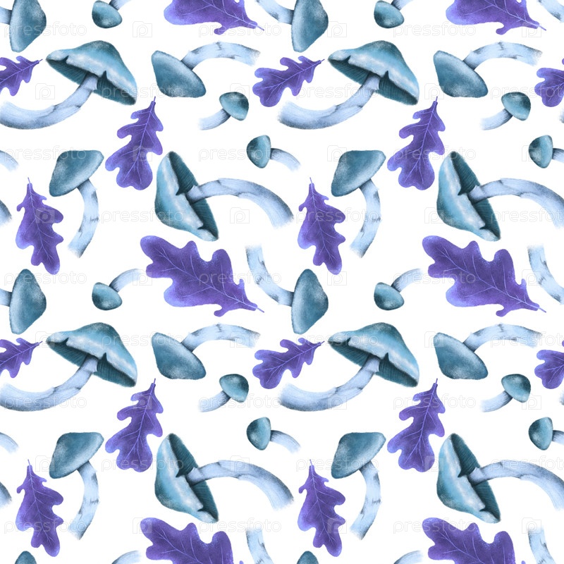 Бесшовный узор с осенними листьями и грибами, идеально подходит для сезонного текстиля, обоев, оберточной бумаги, поздравительных открыток и домашнего декора. Идеально подходит для добавления уютного осеннего прикосновения к любому творчеству