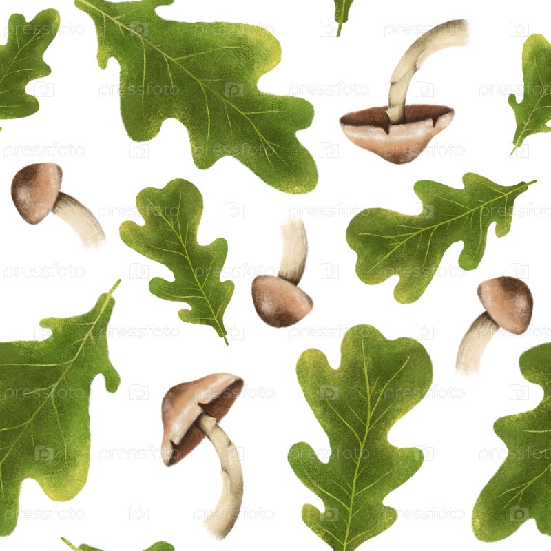 Бесшовный узор с осенними листьями и грибами, идеально подходит для сезонного текстиля, обоев, оберточной бумаги, поздравительных открыток и домашнего декора. Идеально подходит для добавления уютного осеннего прикосновения к любому творчеству