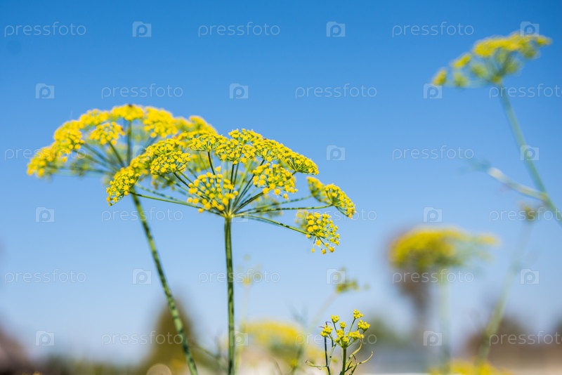 Укроп расцвел летом на грядке. Укроп вырос в огороде. Осень. Зелень. Кулинарные ингредиенты. Приправы. Дилл цветет летом в саду. Дилл растет в саду. Осень. Зелёные растения. Кулинарные ингредиенты. Специи