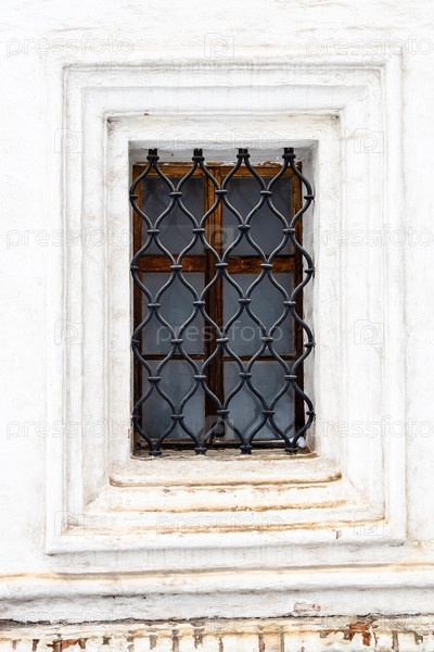 Окно с открытой решеткой в старой монастырской стене