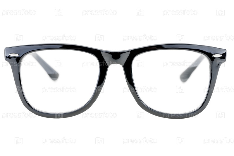 Классические очки в черной пластиковой раме на белом фоне изолированы