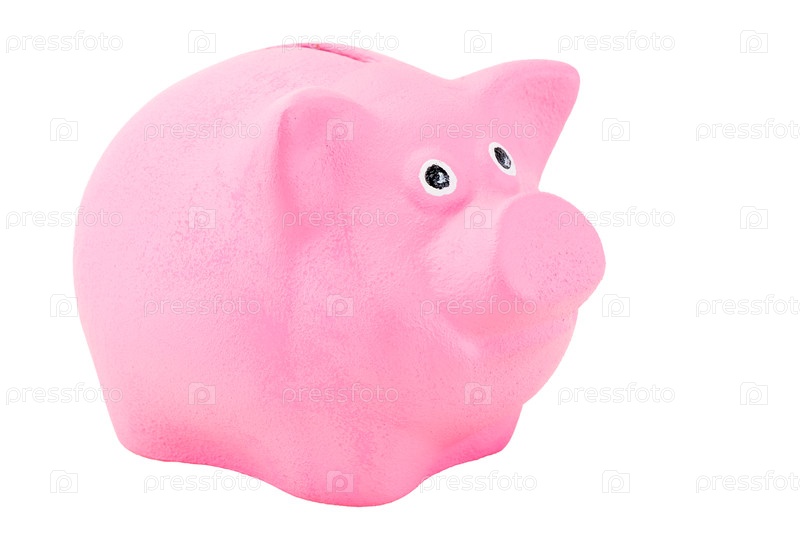 Копилка для монет розовая свинья закрывается на белом фоне