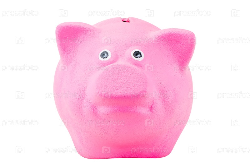 Розовая копилка на белом фоне изолирована