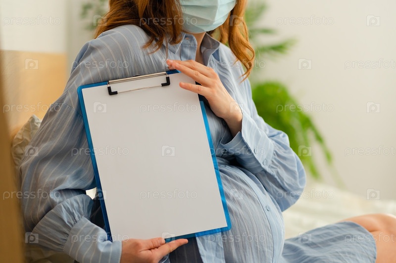 Беременная женщина с блокнотом в больнице