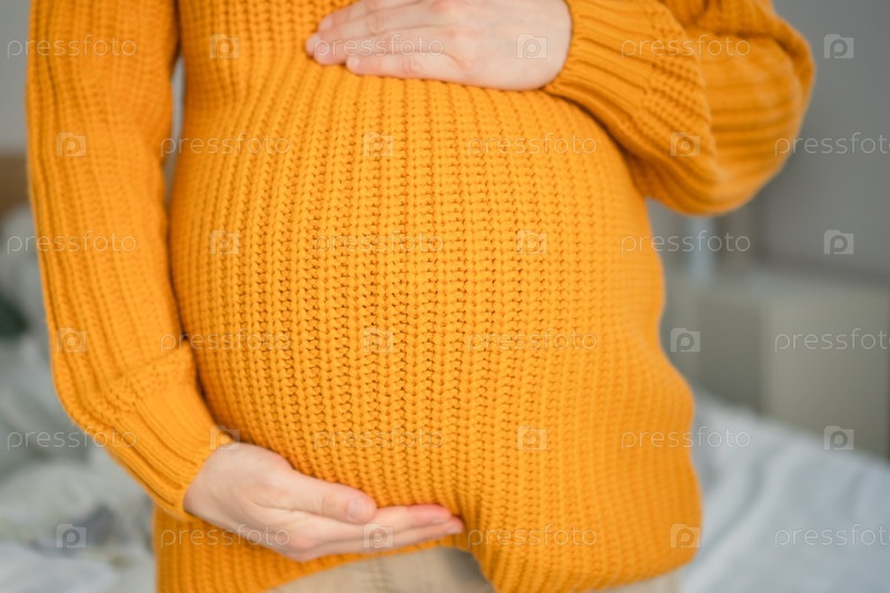 Беременная женщина ласкает детский бугорок