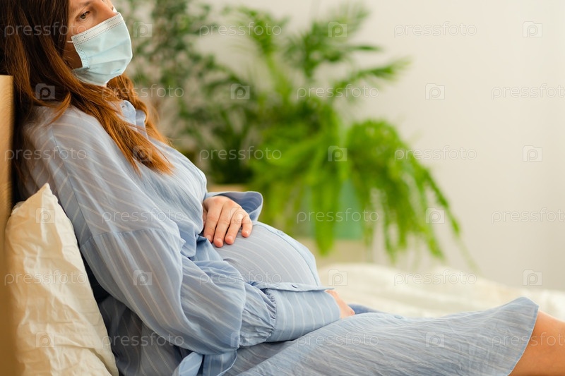В маске беременная женщина отдыхает