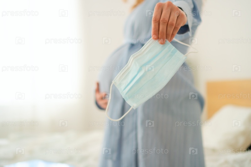 В маске беременная женщина отдыхает