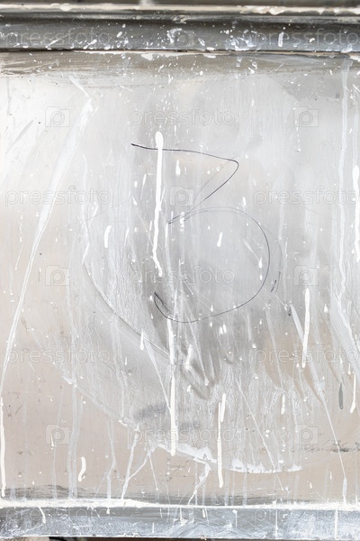 Поверхность оконного стекла размазана известью