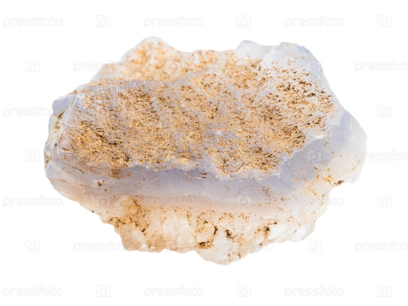 Необрезанный синий агат минерал выделен на белом