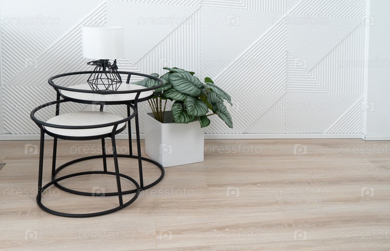 Стильные шикарные гнездовые столы в сочетании с яркой зеленью усиливают эстетику современных жилых помещений