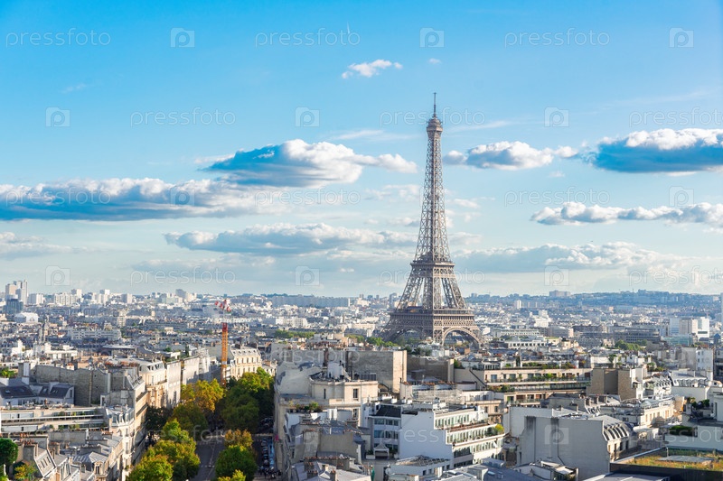 Панорамный вид на знаменитую Эйфелеву башню и парижские крыши, Париж, Франция