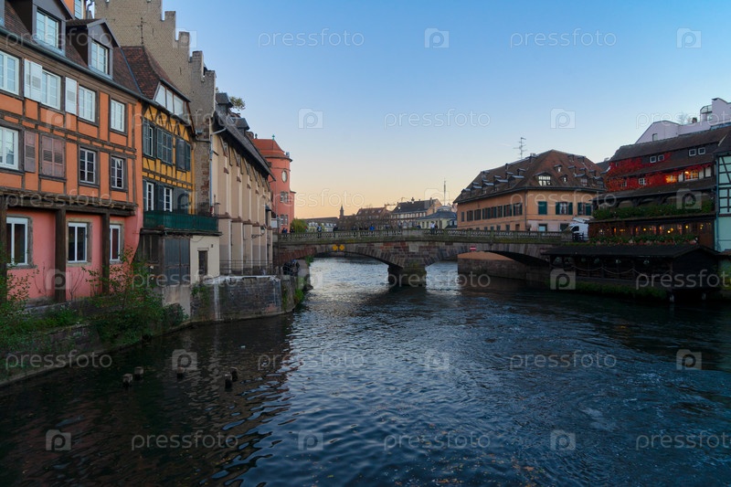 Маленькая Франция средневековый район Страсбурга в сумерках, Эльзас Франция