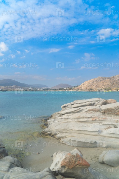 Романтический пляж с камнями на греческом острове, Парос Греция летом