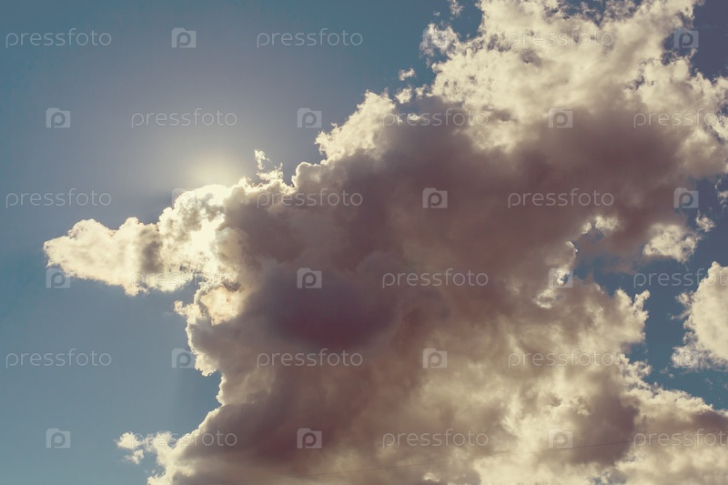 Облака кумулуса на ярко-синем небе (фон, тонированный)