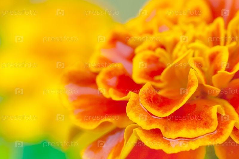 Закрыть вид на оранжевый цветок тагет (маригольд) в саду (небольшая глубина резкости, макро)
