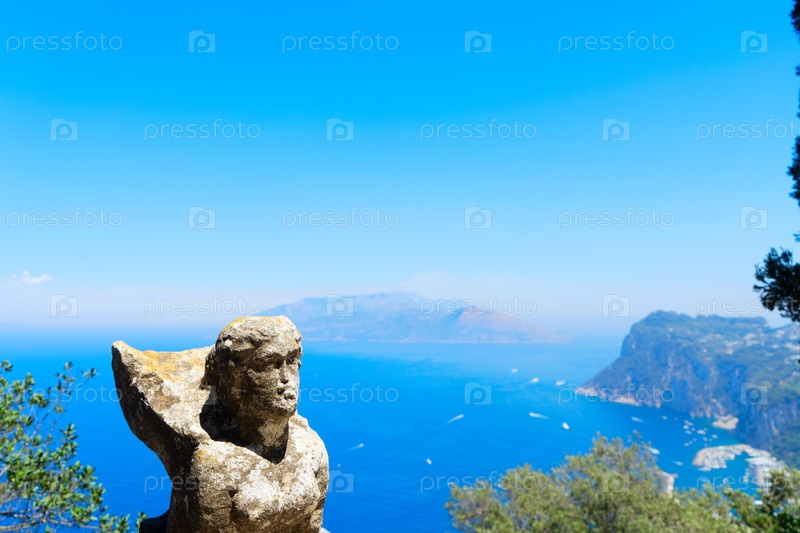 Цветы горшок и море, красивые детали побережья Тирренского моря, остров Капри, Италия