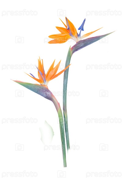 Потрясающие и красивые цветы Стрелиции, показанные на чистом белом фоне для поразительного контраста